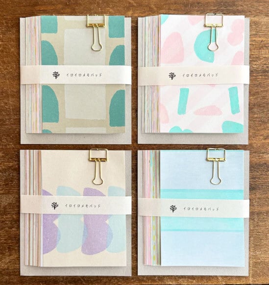 水縞さんが今までにデザインした色々な紙を集めてメモパッドに