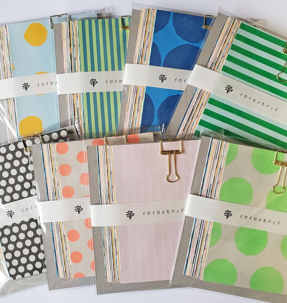 水縞さんが今までにデザインした色々な紙を集めてメモパッドに
