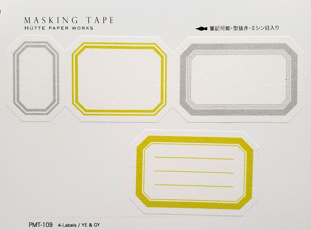 Hutte paper worksマスキングテープ 4-Labelsiイエローグレー40mm PMT-109