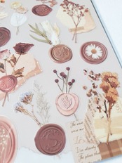 シーリングワックスの形など、植物を紙に「添える」ことをテーマにしたシールです