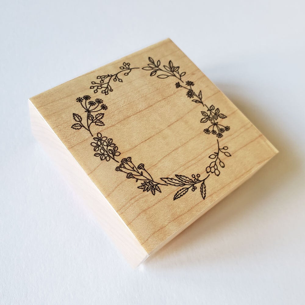 Hutte paper works リーススタンプ フラワー 木製はんこ